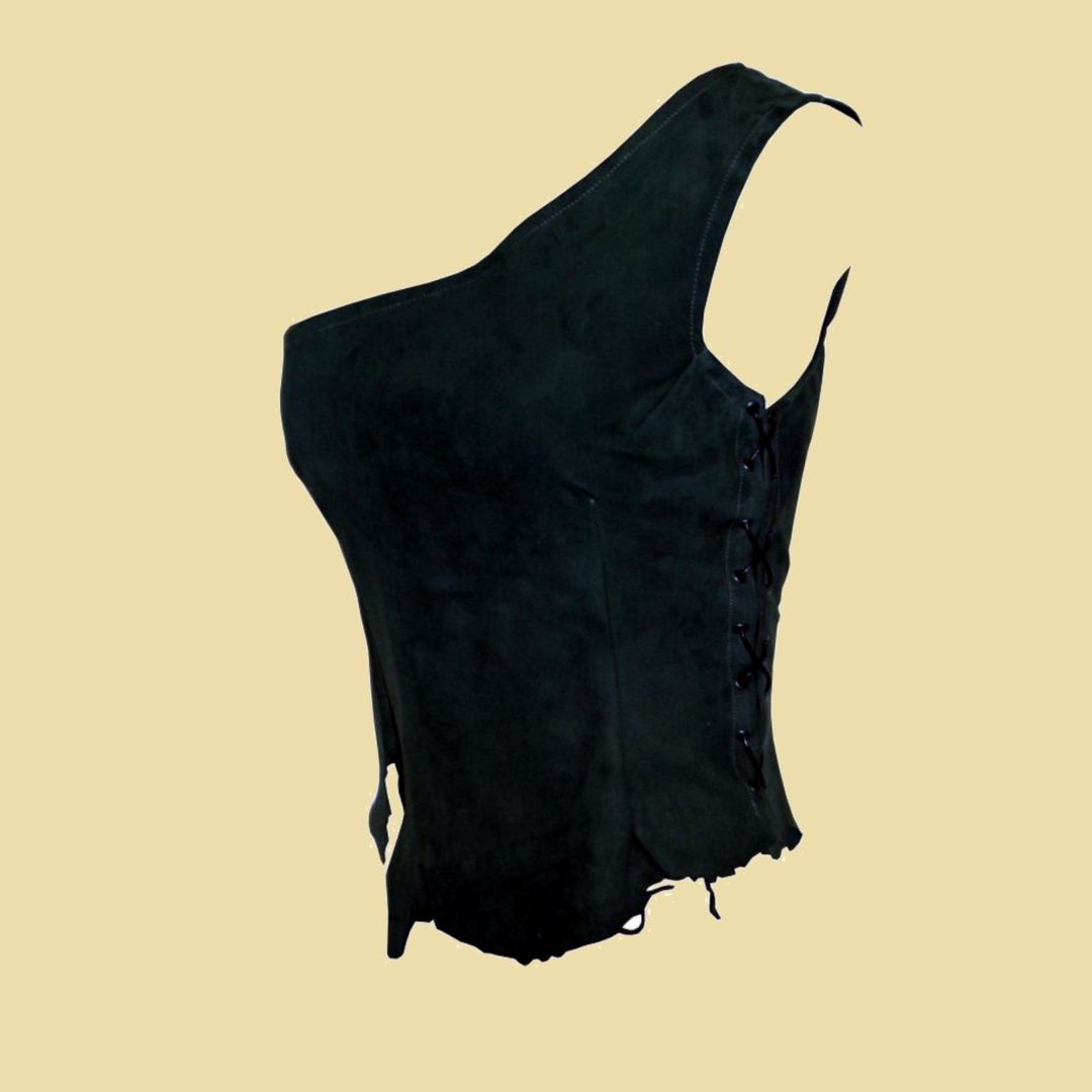 Ein wunderschönes Oberteil aus Ziegenleder. Geschlossen wird es durch eine seitliche Schnürung wodurch es noch in der Größe angepasst werden kann. Die ideale Ergänzung zu unserem Schamaninen- oder Überrock Dieses Oberteil macht nicht nur im Larp sondern auch auf jeder Goa- oder Strandparty eine gute Figur Gerne individualisieren wir dieses Top für euch. Fragt uns einfach und teilt uns eure Ideen mit.