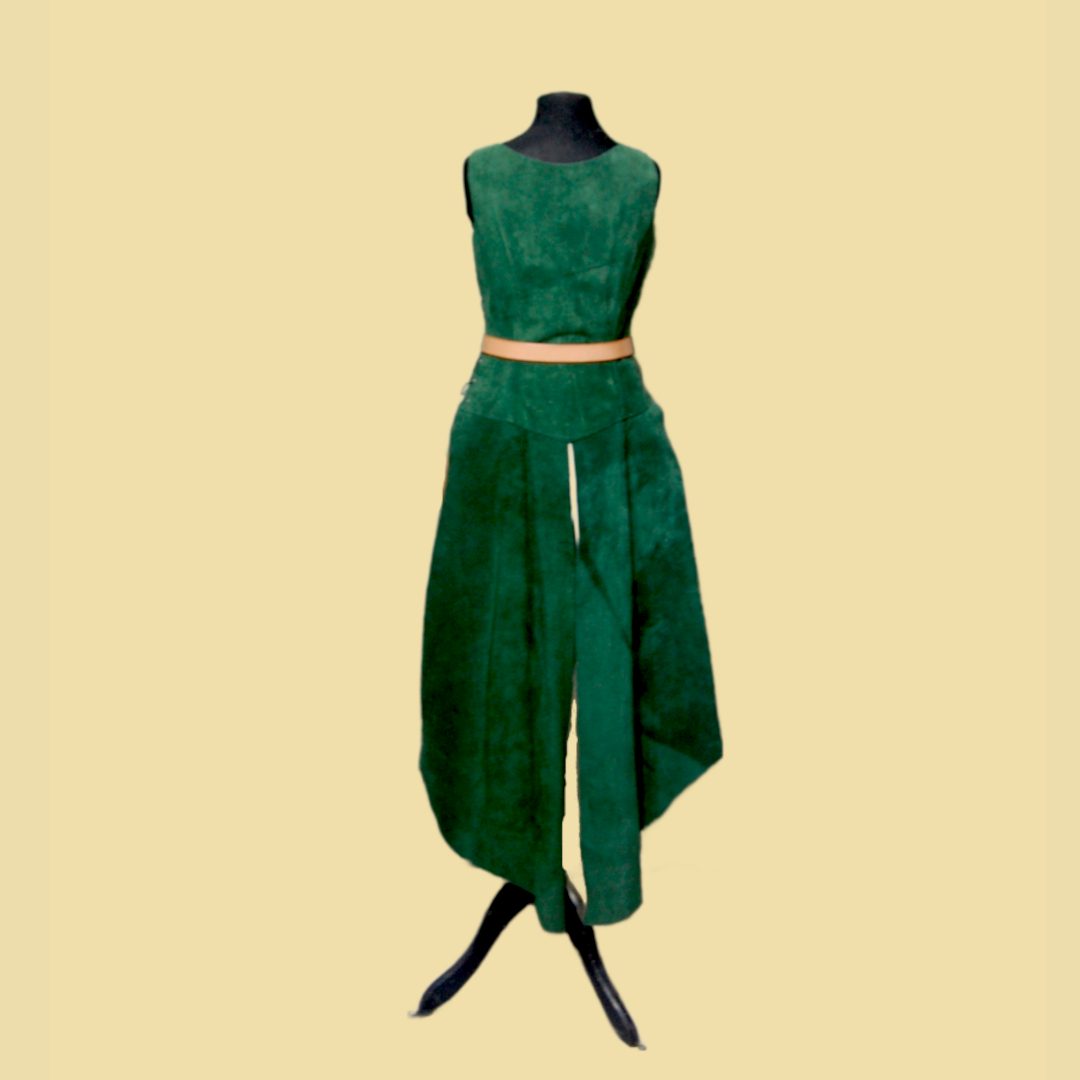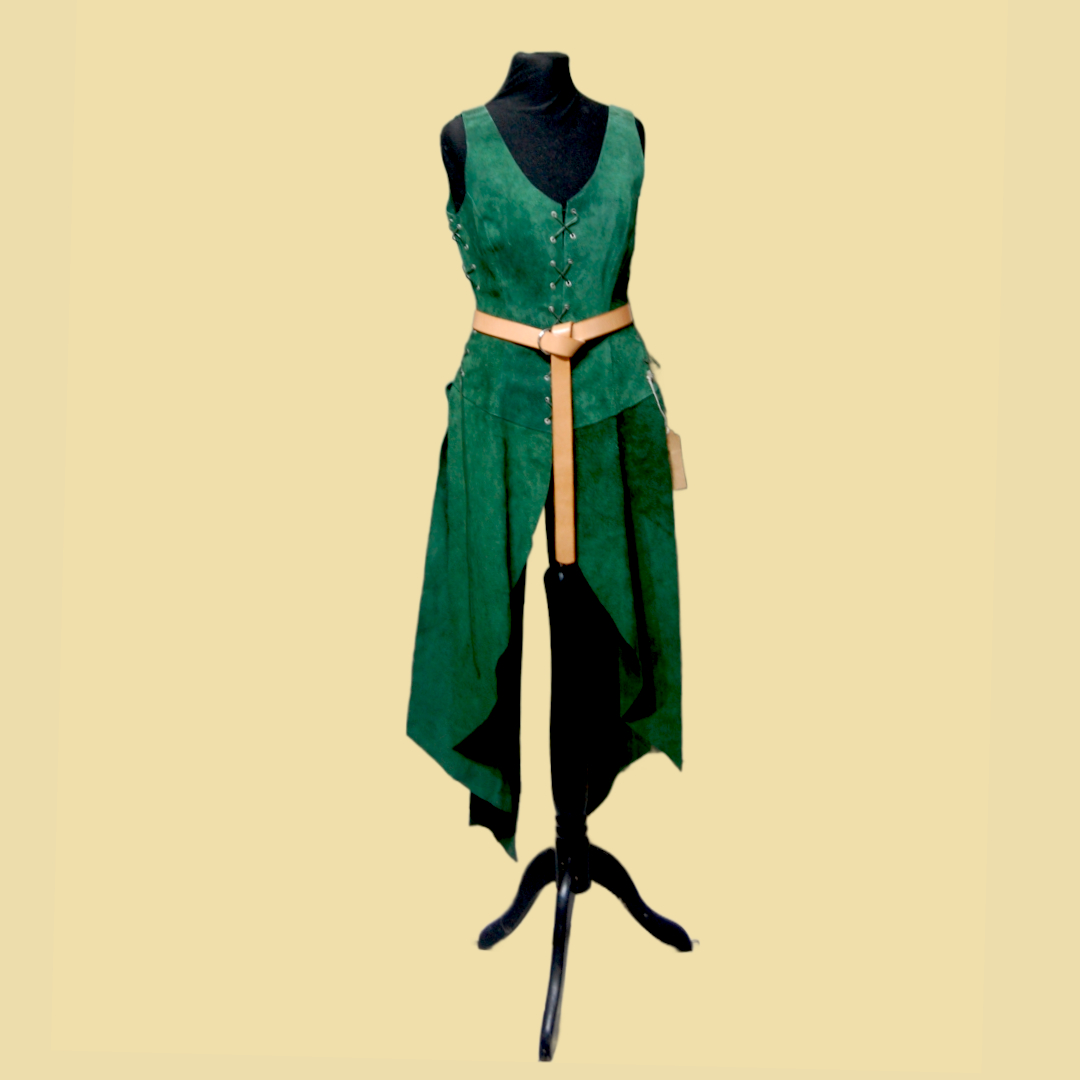 Je nach Körpergröße reicht der Waffenrock bis ca. zur Mitte des Schienbeins. Durch die Länge und die fein geschwungenen Schöße aus leichtem Leder eignet sich der Waffenrock für viele Darstellungen im Larp oder auf einem Mittelaltemarkt. Seien es Söldnerinnen oder Elfenkriegerinnen.