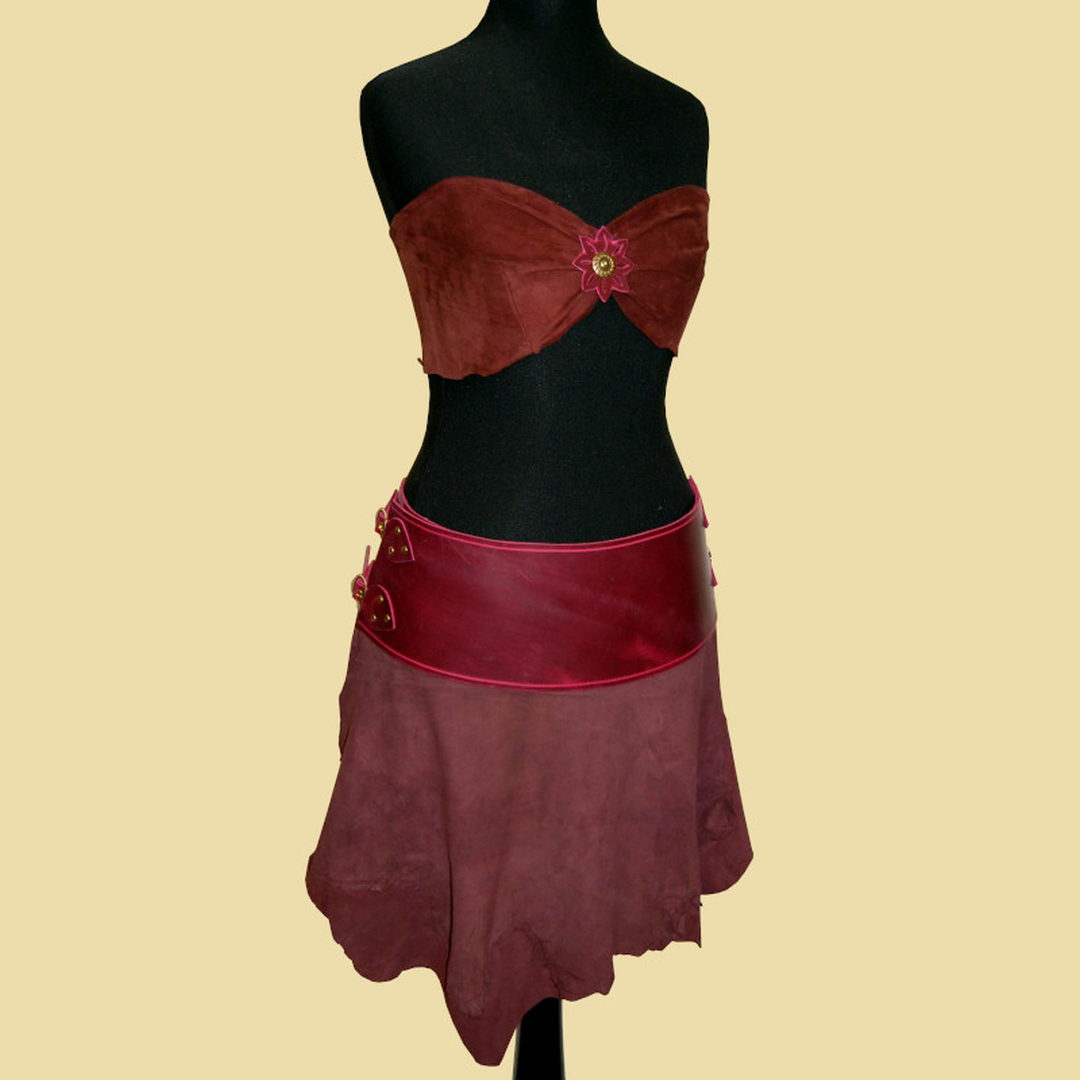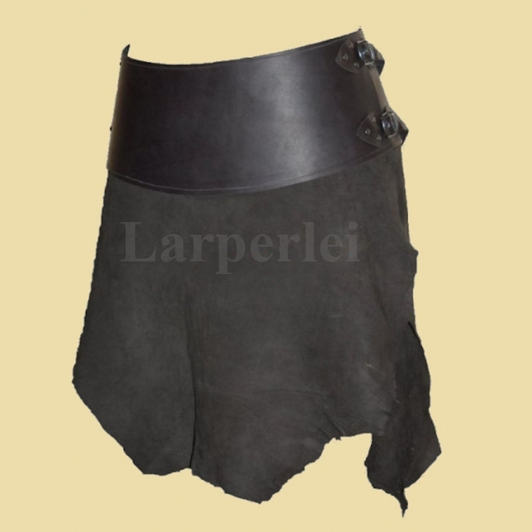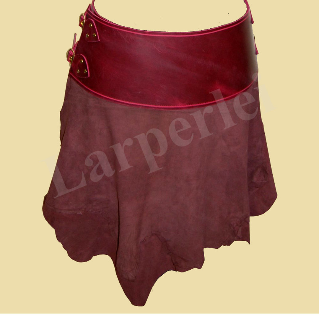 Ein auf beiden Seiten geschlitzter Überrock der natürlich auch als normaler Rock getragen werden kann. Er ist gefertigt aus Ziegenvelour mit einem Bund aus Fettleder. Geschlossen wird er seitlich mit je 2 Schnallen. Die Länge kann aufgrund der natürlichen Länge der Lederhaut leicht variieren.