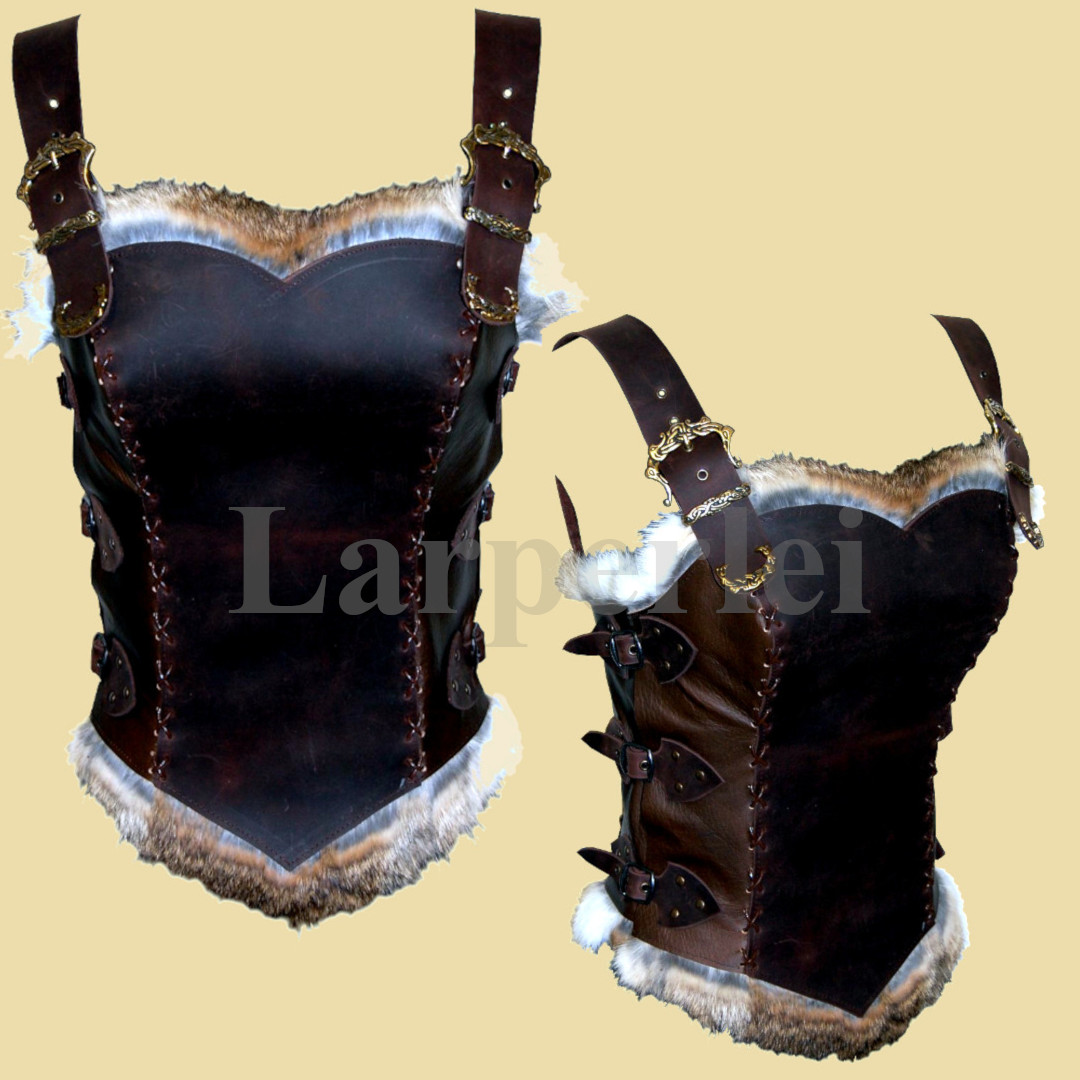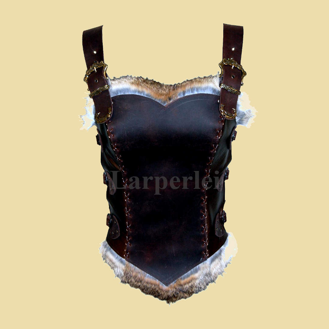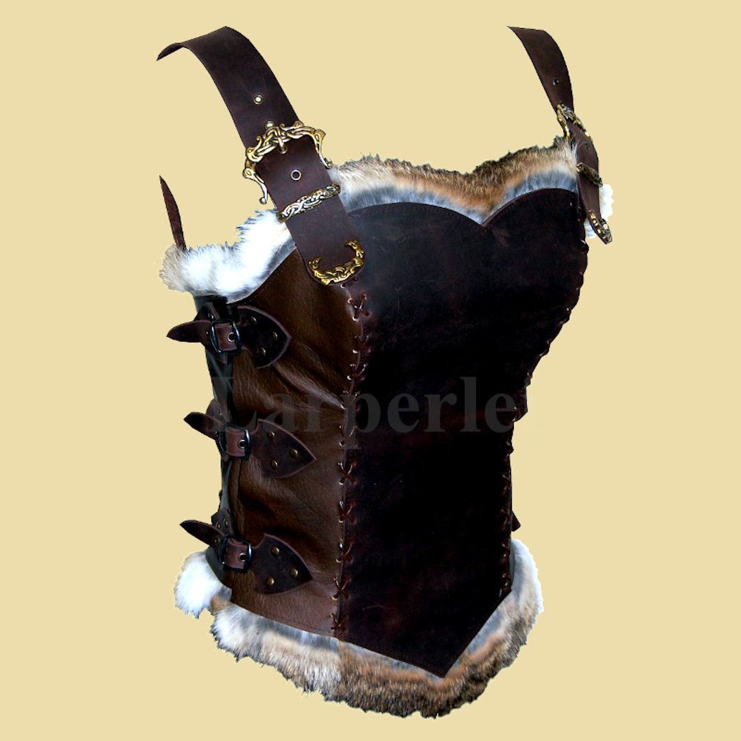 Vollbrustcorsage mit Fellbesatz und Trägern "Alfdis"