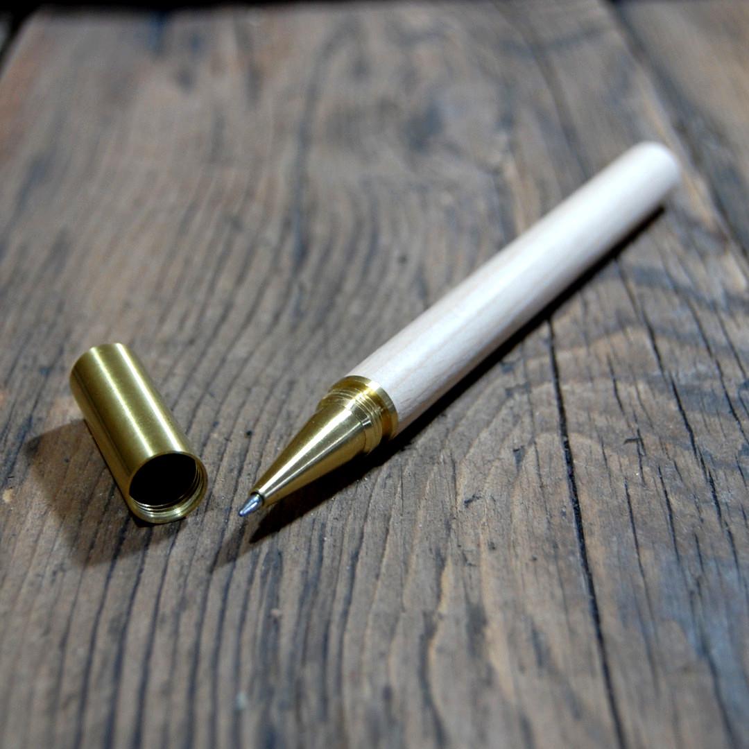 Ein Kugelschreiber mit auswechselbarer Mine. Erhältlich ist dieses stylische Schreibgerät aus einheimischer Buche oder edlem Sandelholz. Der Stift liegt gut in der Hand und bietet ein komfortables Schreibgefühl
